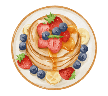 Pancakes , Nutella, Spéculos, Fruits rouges, Glace vanille, Topping spéculos
