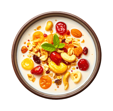 Yaourt Grec, Muesli, Coulis de mangue, Banane, Fruit rouges, Noix de coco, Mix de graines
